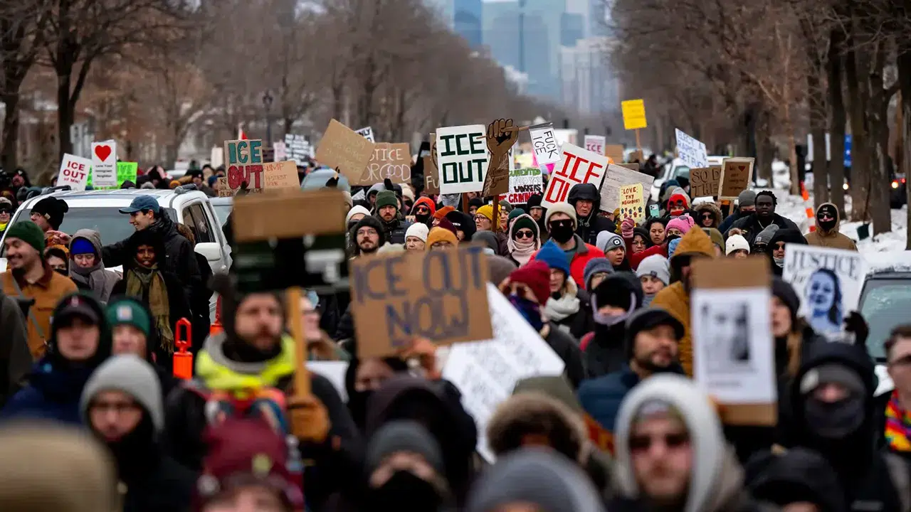 ABD’nin Minneapolis kentinde, 7 Ocak’ta Göçmenlik ve Gümrük Muhafaza (ICE) görevlisinin Renee Good’u vurarak öldürmesinin sonrasında başlayan protestolar sürüyor. Bölgedeki liselerde öğrenciler okulu boykot ederken, işletmelerin çoğu da kapalı kaldı.