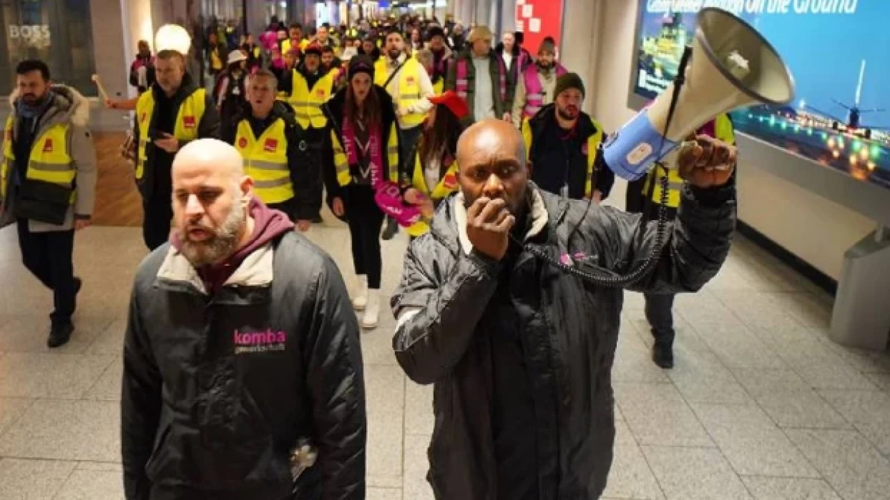 Frankfurt başta olmak üzere, Almanya'nın birçok büyük kentindeki havalimanında güvenlik personelinin protesto ve iş bırakma eylemlerinin ardından uçuşlar durduruldu.