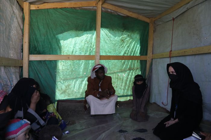 Birleşmiş Milletler İyi Niyet Elçisi ve aktris Angelina Jolie, yıllardır süren çatışmaların neden olduğu insani felakete dikkati çekmek için 6 Mart'ta Yemen'e gelmişti.