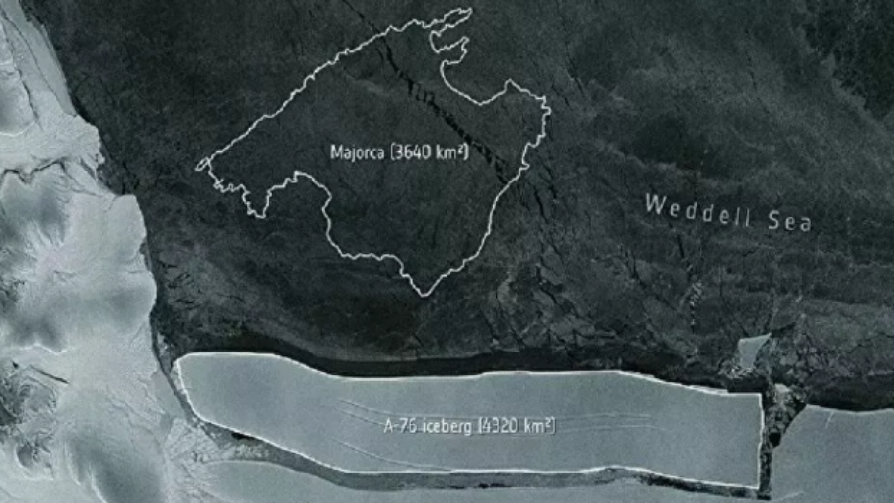 Bilim insanları, A-76 olarak adlandırılan buzdağının 170 kilometre uzunluğunda ve 25 kilometre genişliğinde olduğunu belirtti. Buz kütlesinin Antarktika’daki Filchner-Ronne Buz Sahanlığı'ndan koptuğu ve şu anda Weddell Denizi’nde olduğu ifade edildi.