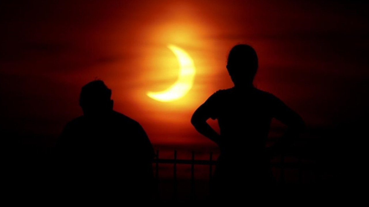Sabah vakti meydana gelen doğa olayında ayın yaklaşık yüzde 60'ını kapattığı güneş, gökyüzünde kızıl hilal şeklinde ilginç görüntü oluşturdu.