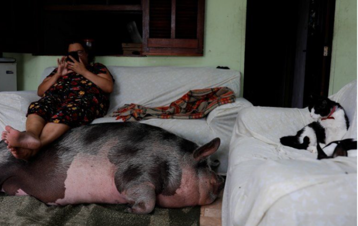 Brezilya'da hayvansever bir ailenin evcil hayvan olarak aldığı yavru domuz, 3 yaşına vardığında 250 kilogram ağırlığına ulaştı.