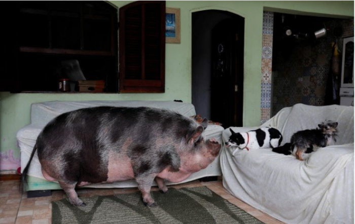 Brezilya'da yavru evcil hayvan olarak alınan domuz, 250 kilogram oldu.