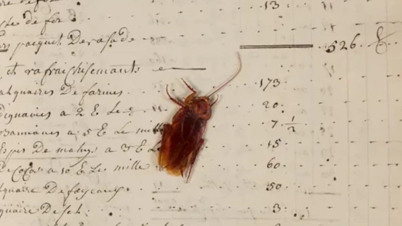 Britanya’da Ulusal Arşiv uzmanı Oliver Finnegan, hamam böceğini 200 yıldan uzun bir süre sonra ilk kez açılan bir gemi defterinin arasında mumyalaşmış halde buldu.