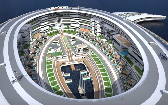 Lazzarini'ye göre tam bir "yüzen şehir" olan terayat, oteller, alışveriş merkezleri, parklar ve hatta daha küçük gemiler ve uçaklar için limanlara sahip olacak.