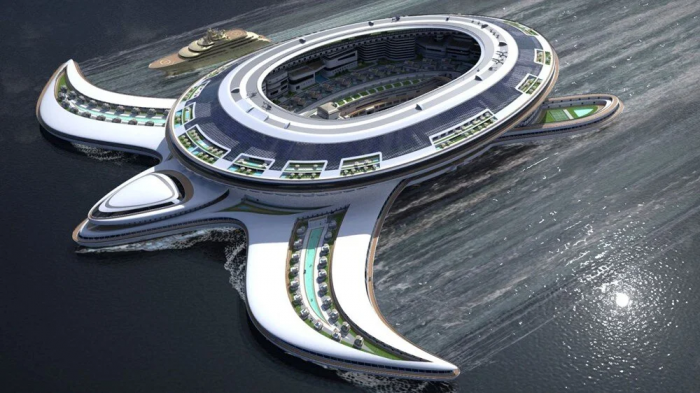 Diğer taraftan şirket tarafından, kaplumbağa şeklinde tasarlanacak olan yapının Suudi Arabistan'da inşa edileceği ve Cidde'nin kuzeyindeki Kral Abdullah Limanı'ndan bir alanın inşaat işin seçildiği ifade edildi.