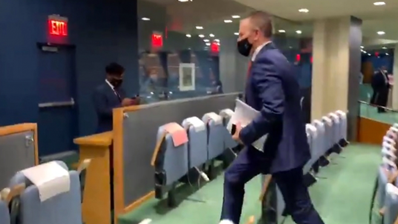 Filistin'in BM'deki Büyükelçisinin sözleri üzerine İsrail'in BM'deki Büyükelçisi Gilad Ardan salonu terk etti.