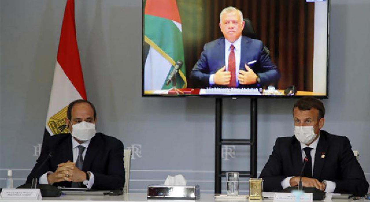 Elysee Sarayından yapılan yazılı açıklamada, Macron, Sisi ve Abdullah arasında üçlü görüşme gerçekleştirildiği belirtildi.
