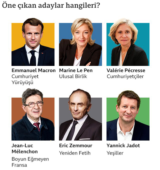 Seçimde mevcut cumhurbaşkanı Emmanuel Macron ve aşırı sağcı aday Marine Le Pen'in ismi öne çıkıyor.