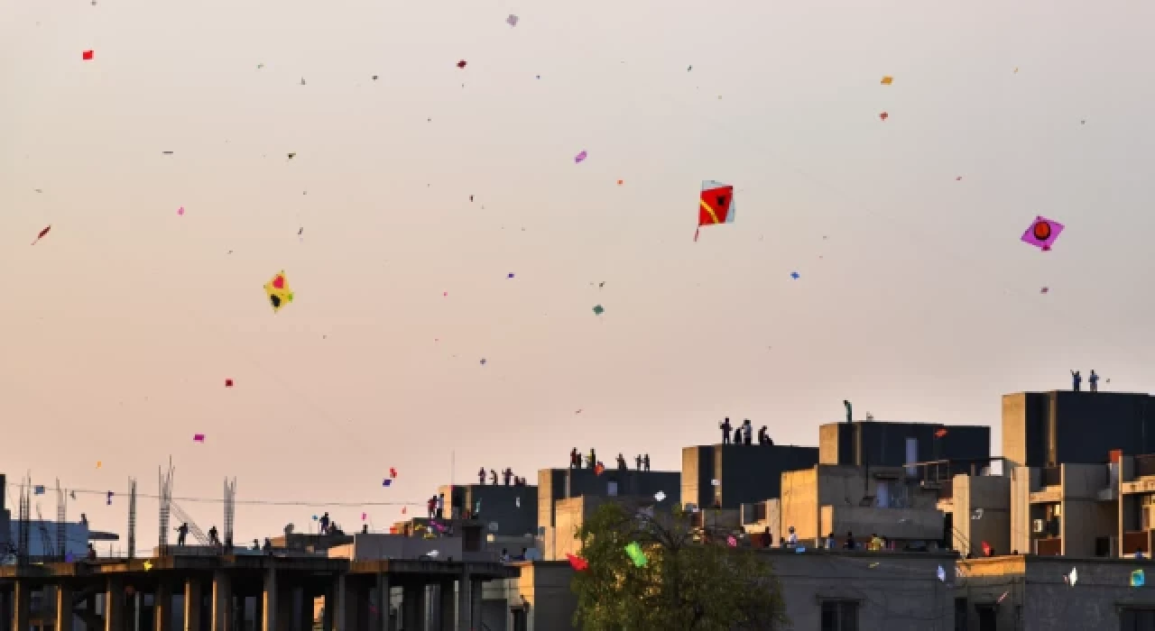 Gujarat eyaletinde yüzlerce kişi Uttarayan festivali için teraslara ve binaların çatılarına tırmandı.