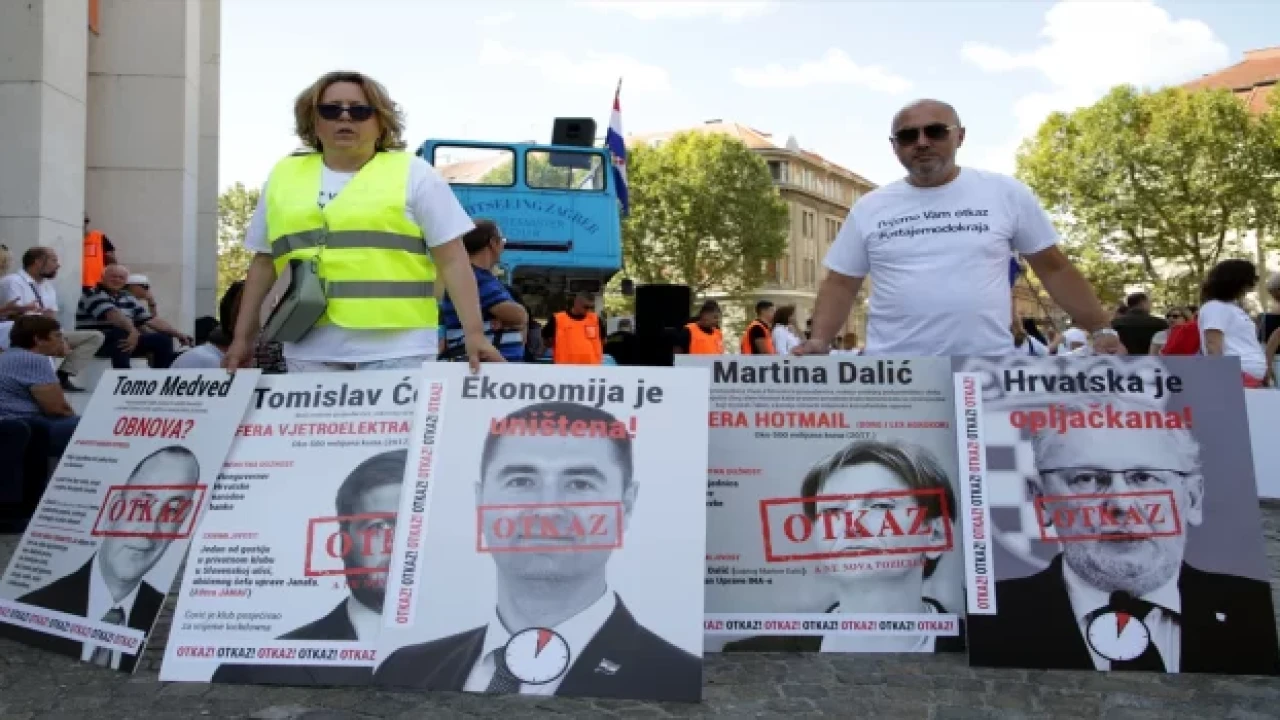"Birlikte Özgürüz" girişimince organize edilen protestoda, "Sizi kovuyoruz", "Plenkovic tahttan in!", "Gençlerin göç etmesi sizin başarınız" yazılı pankartlar taşındı.