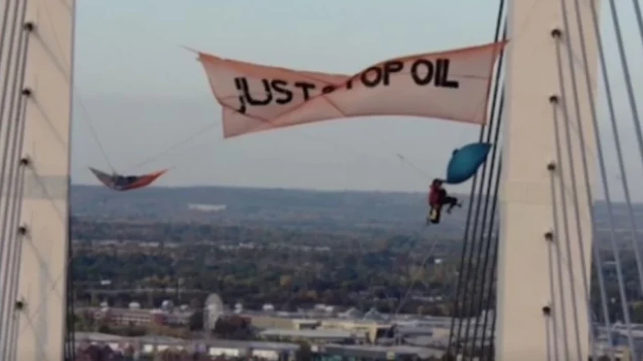 İngiltere'nin başkenti Londra'da, Thames Nehri üzerinde yer alan Kraliçe 2. Elizabeth köprüsüne tırmanan iklim aktivistleri Morgan Trowland ve Marcus Decker hapis cezasına çarptırıldı.