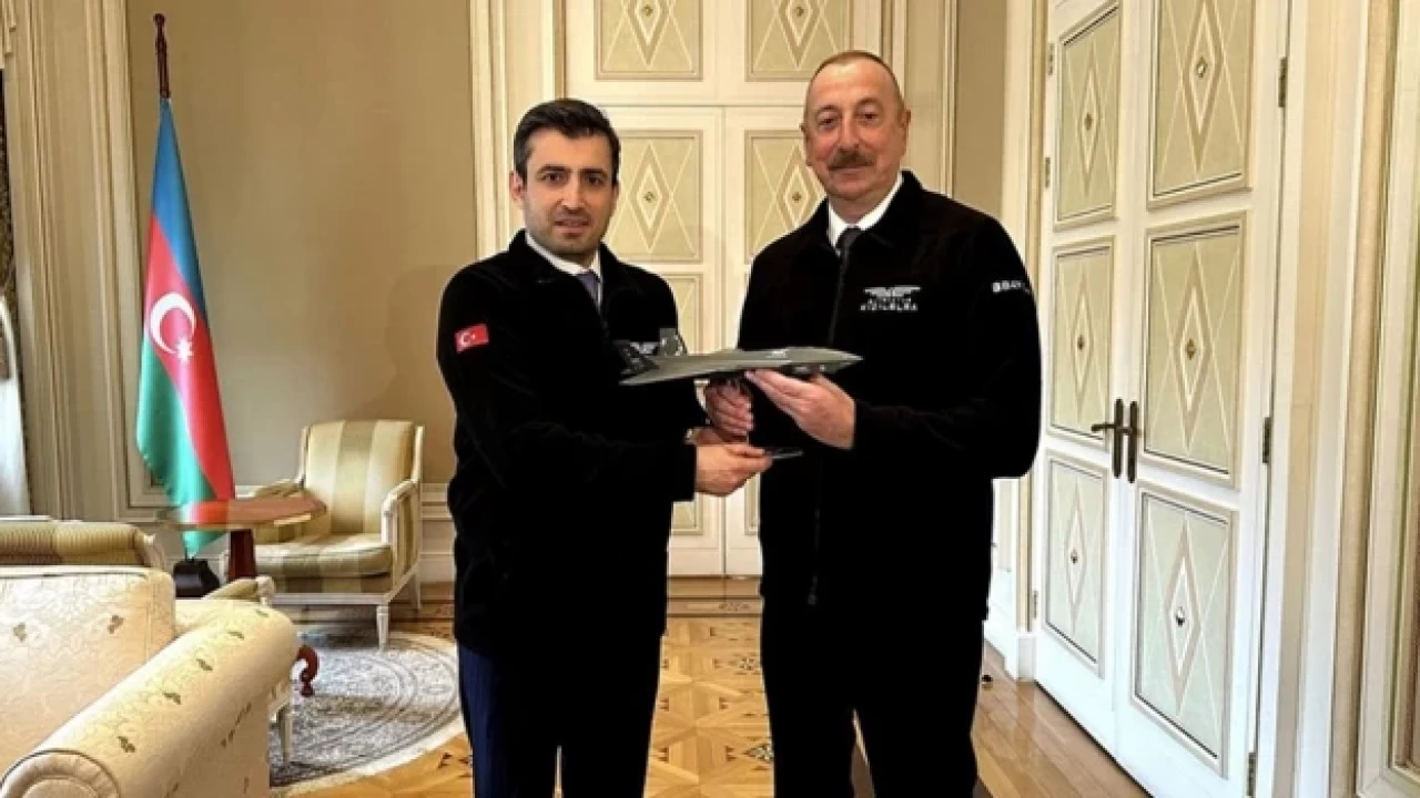 Azerbaycan ile Türkiye arasında savunma sanayisi alanındaki işbirlikleri konusunda görüş alışverişinde bulunulan görüşmede Bayraktar, Aliyev'e hediye takdim etti.