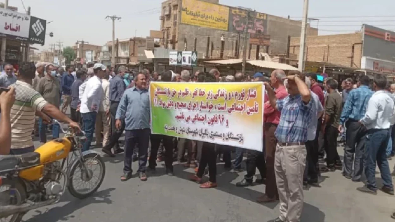 Sosyal güvenlik kurumları önünde toplanan emekliler, hükümete tepki gösterdi. Gösterilerde Cumhurbaşkanı İbrahim Reisi ve Çalışma Bakanı Huccetullah Abdulmeliki hedef alınarak, "Verilen sözler boş, sofralarımız boş", "Hakkımızı almadan oturmayacağız", "Bugün yas günü, sahipsiz emekliler için yas günü" şeklinde sloganlar atıldı.