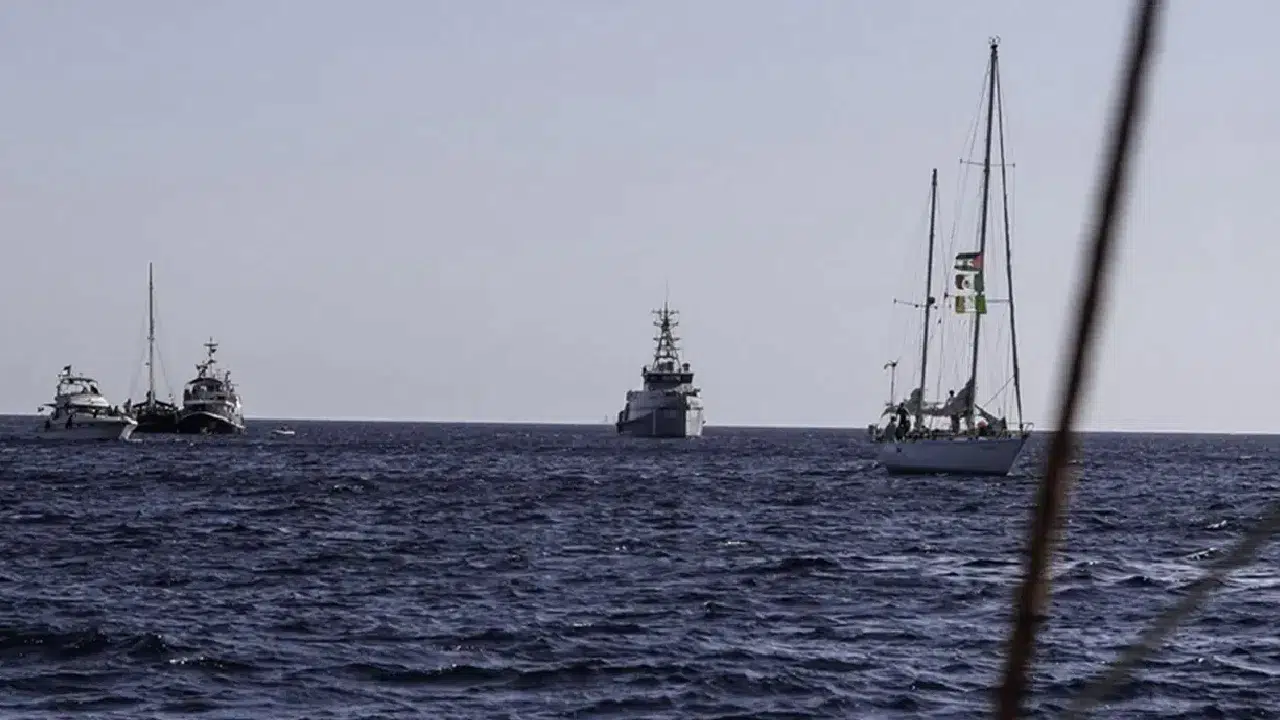 Gazze ablukasını kırmak için yola çıkan Küresel Sumud Filosu, İsrail donanması tarafından 20 savaş gemisiyle kuşatıldı. Aktivistler yüksek alarma geçerken, İsrail’in gemilere el koyma süreci başladı.
