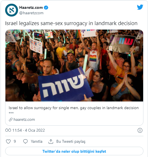 Temmuz ayında mahkeme, İsrail'de eşcinsel çiftlerin bir vekil aracılığıyla çocuk sahibi olmasını engelleyen taşıyıcı annelik yasasının bazı kısımlarını iptal etmişti.