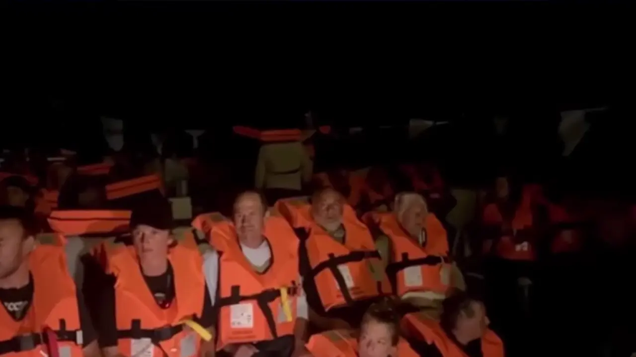 Yayında, anonslar sonrası gemilerdeki katılımcıların önceden belirlenen acil durum protokollerine göre can yeleklerini giyerek oturmuş halde beklediği görüldü.