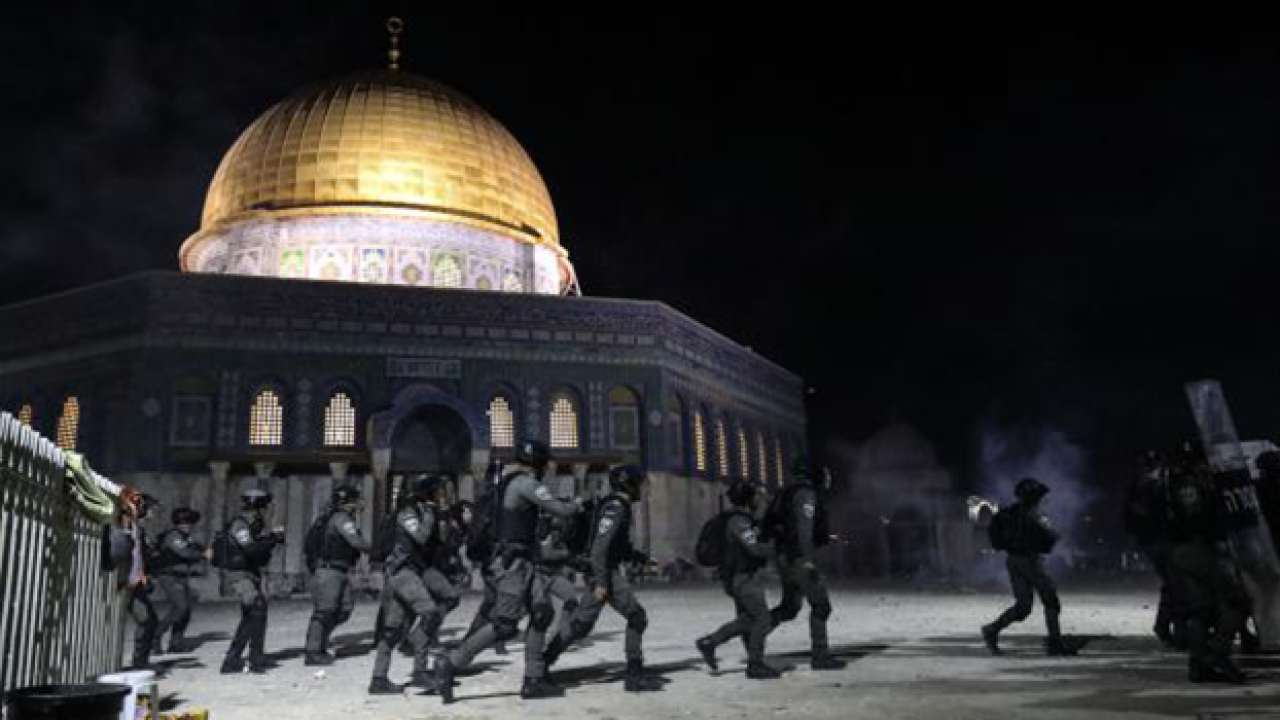 Mescid-i Aksa’ya baskın düzenleyen İsrail polisi, Filistinlilere göz yaşartıcı gaz, plastik mermi ve ses bombalarıyla müdahale etti.