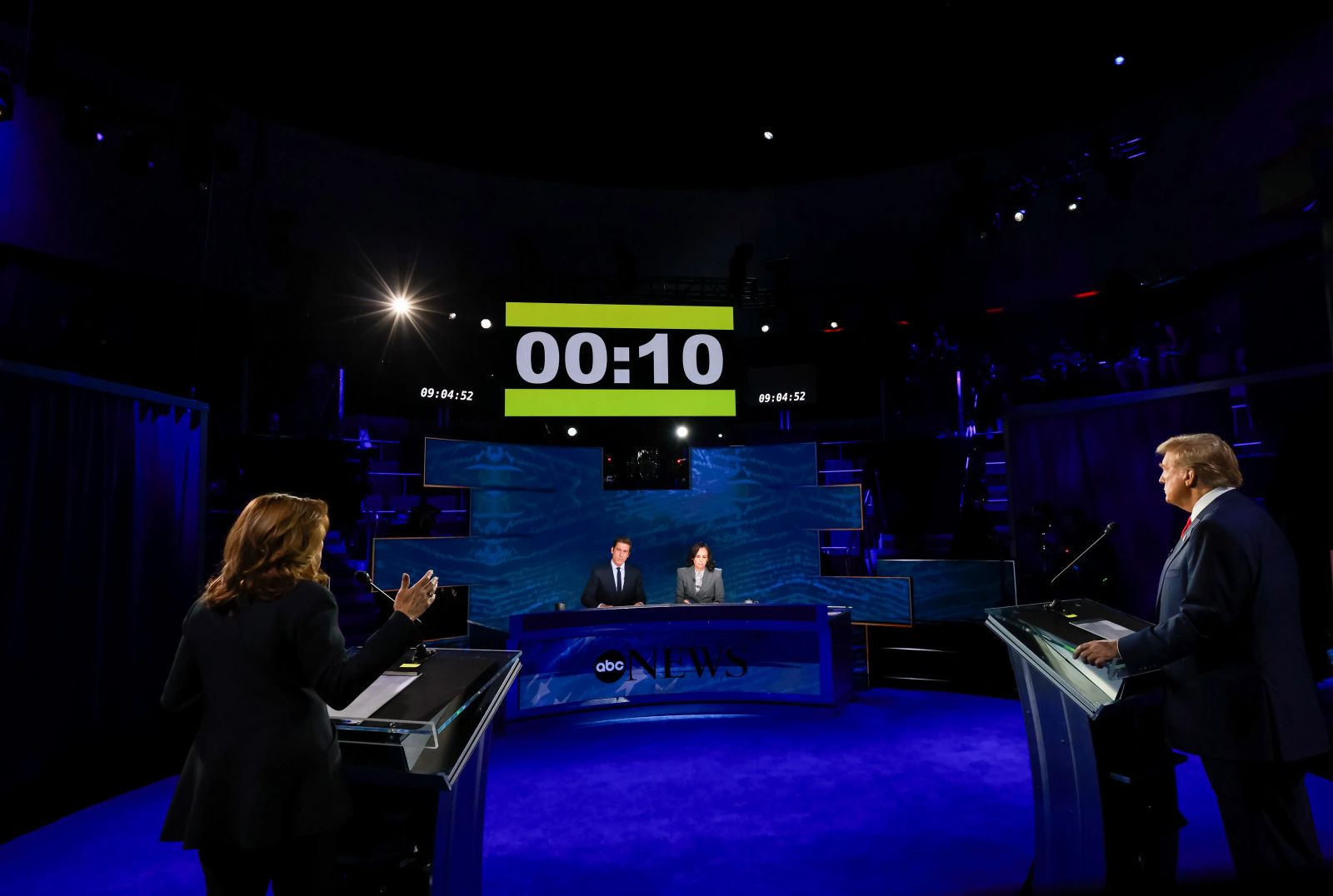 Bu anlardan birinde Trump, Demokratlar’ın yönetimindeki eyaletlerde 9. ayda kürtaj yapıldığını, “bebeklerin doğum sonrası öldürüldüğünü” ortaya attı. ABC televizyonu moderatörü Linsey Davis, ABD’de böyle bir eyalet olmadığını kaydetti.