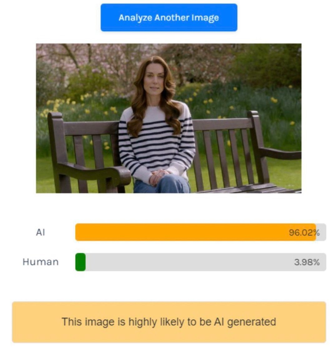 Prenses 2 dakika 15 saniyelik video mesajında kemoterapi gördüğünü de söyledi. Ancak X'te Haber Report tarafından atılan iddiaya göre, Kate'in bu videosunun yapay zeka ile oluşturulduğu söylendi.