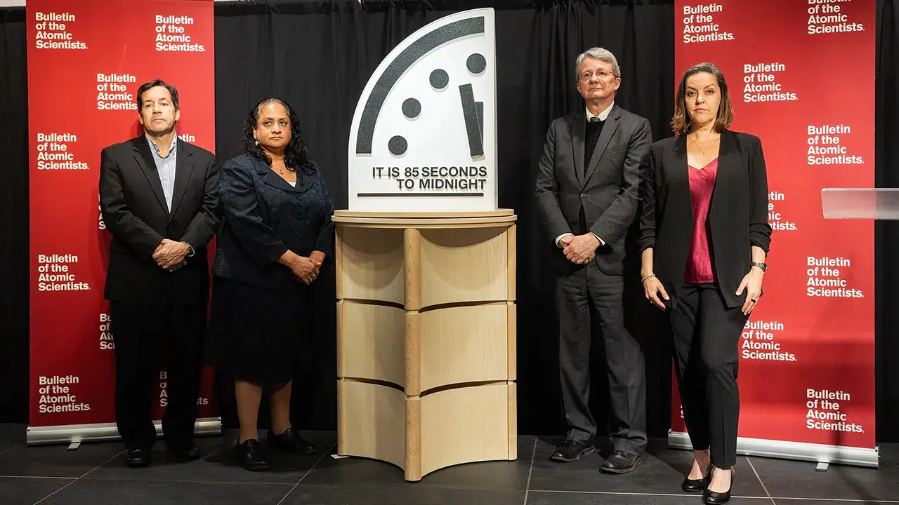 Atom Bilimcileri Bülteni, bu yıl Kıyamet Saati’ni gece yarısına 85 saniye kalaya ayarlayarak gece yarısına en yakın saate çekti. Güncelleme, dünyanın insan kaynaklı tehditlerle daha önce hiç olmadığı kadar tehlikeli bir noktada olduğuna dikkat çekiyor.