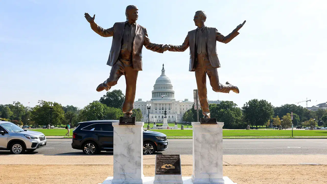 ABD'de salı günü Kongre binası önüne Trump ile Epstein'ı ele ele tutuşurken tasvir eden heykel konulmuştu.