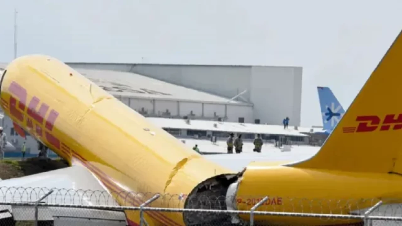 Kosta Rika Havalimanı’nda DHL tarafından işletilen bir kargo uçağı, acil iniş yaptıktan sonra ikiye ayrıldı.