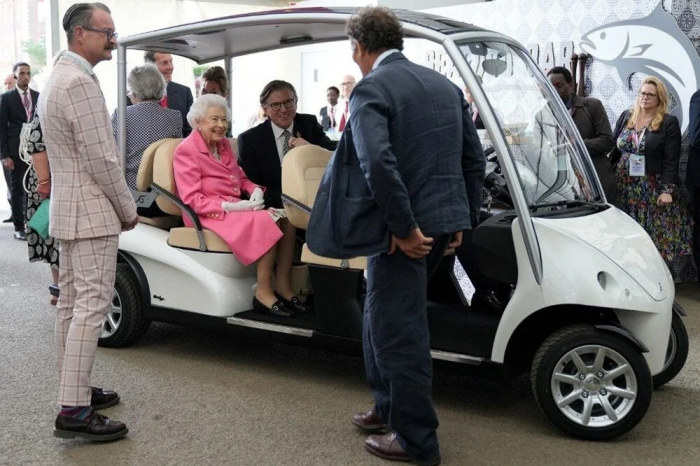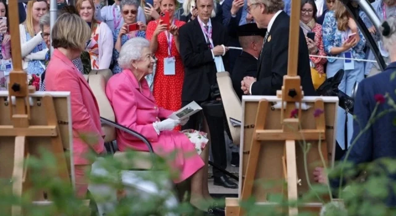 96 yaşındaki Kraliçe, çiçek fuarını her yıl olduğu gibi yürüyerek değil küçük bir aracın içinde gezdi.
