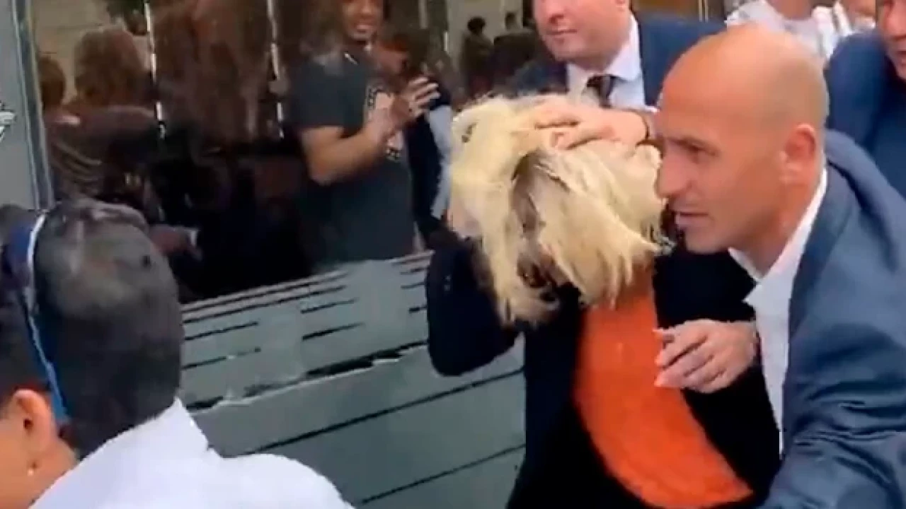Partililerle birlikte sokakta yürüyen Le Pen'e yumurta atıldı. Yumurta atıldıktan sonra korumalar hızlıca aşırı sağcı liderin etrafını sardı.