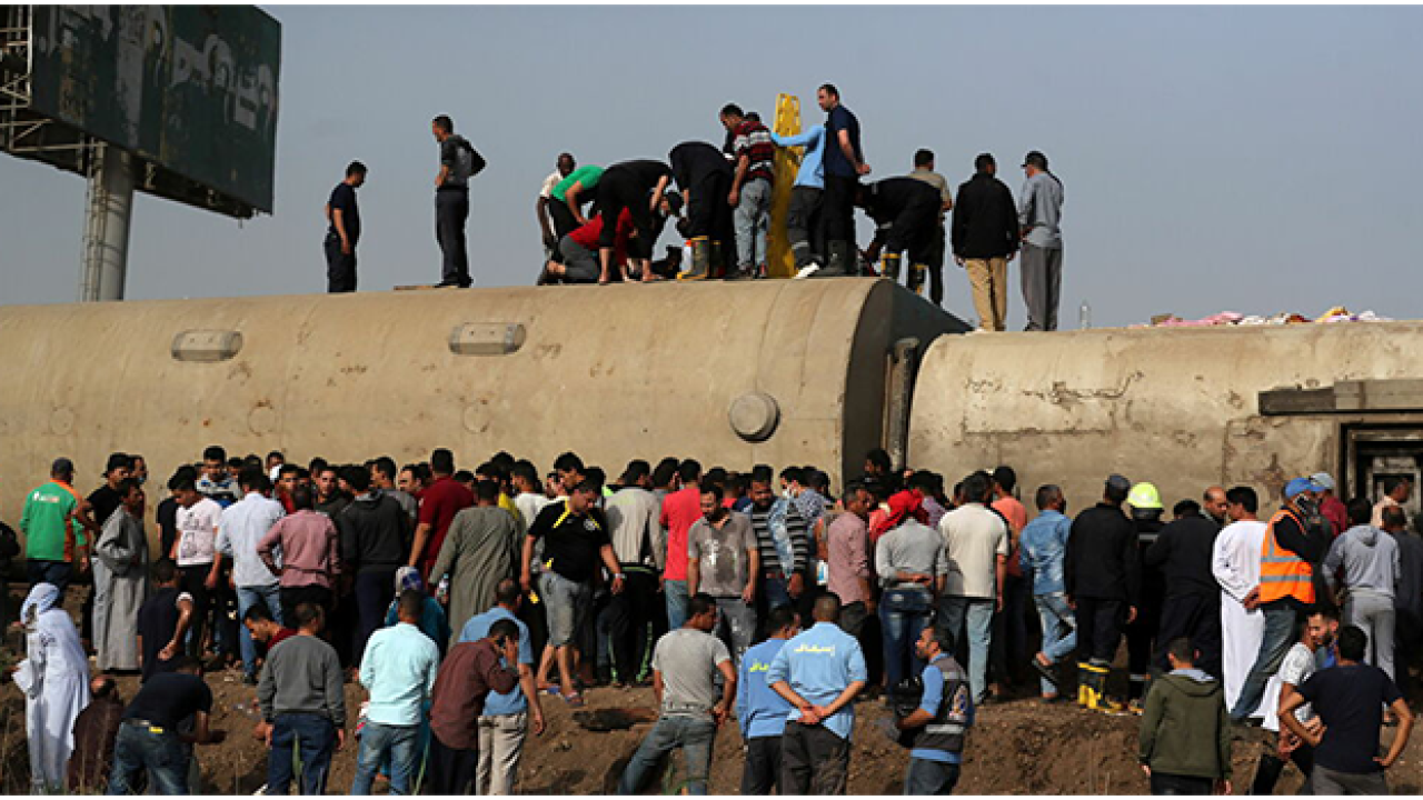 Mısır Demiryolları Kurumundan gün içerisinde yapılan açıklamada, 949 sefer sayılı Kahire-Mansura yolcu treninin Kalyubiye kentinde raylardan çıktığı ve 4 vagonun devrildiği belirtilmişti.