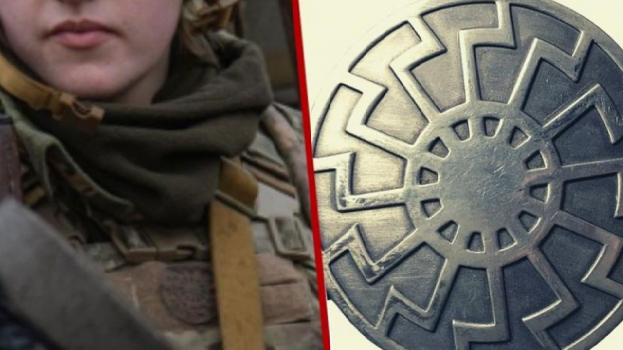 Görsellerden birinde yer alan Ukraynalı kadın bir askerin üniformasında 'kara güneş' sembolü yer aldı.