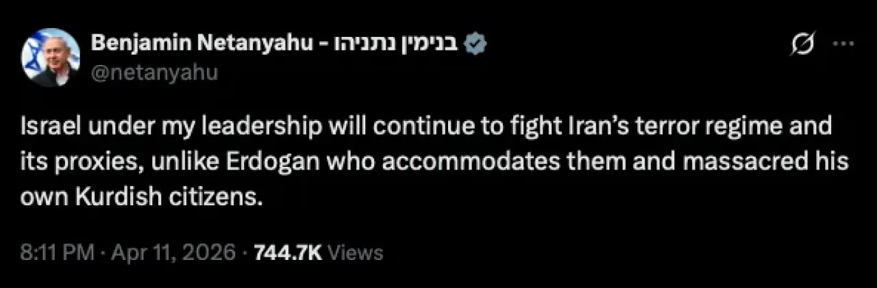 Netanyahu, yaptığı paylaşımda Cumhurbaşkanı Erdoğan’ın İran ve bağlantılı yapılarla uyum içerisinde hareket ettiğini ileri sürdü. Diplomatik nezaket sınırlarını aşan açıklamasında Netanyahu, Türkiye'nin terörle mücadelesini çarpıtarak "kendi Kürt vatandaşlarını katlettiği" yönünde ağır ve asılsız bir iddiada bulundu. Bu ifadeler, iki ülke arasındaki zaten gergin olan ilişkilerde yeni bir krizin fitilini ateşledi.