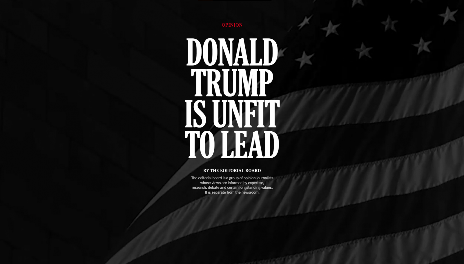 Gazetenin yayın kurulu Trump’ın ”ülke tarihinde başkanlığa aday olan isimler arasında ofise en uygun olmayan isimlerden olduğunu yaptıklarıyla gösterdiğini” ifade etti.