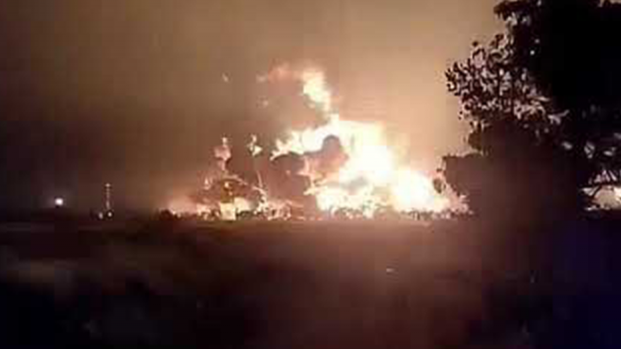 Sosyal medyada paylaşılan görüntülerde, patlamanın ardından dev alev toplarını içinde bulunduran büyük bir yangın meydana geldiği görülüyor.