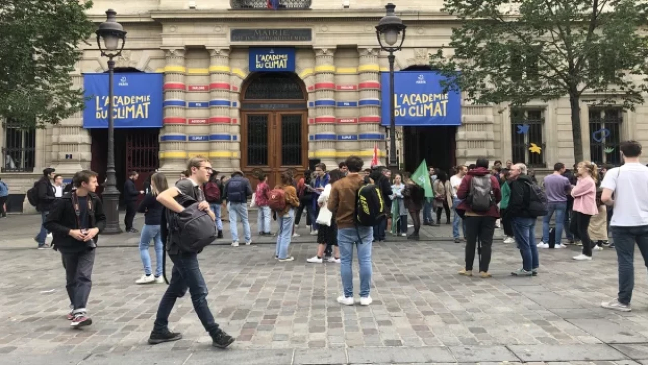 Başkent Paris'te gençler, İklim Akademisi'nin önünde toplandı.