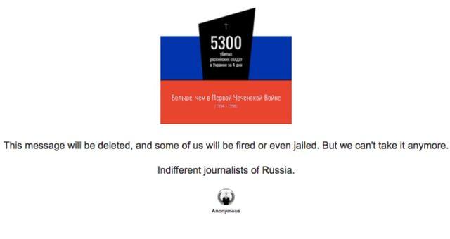 Siber saldırıya uğrayan TASS'ın sayfasında bir süre "savaşa karşı sokaklara çıkma çağrısı" yapılan metin yer almıştı.