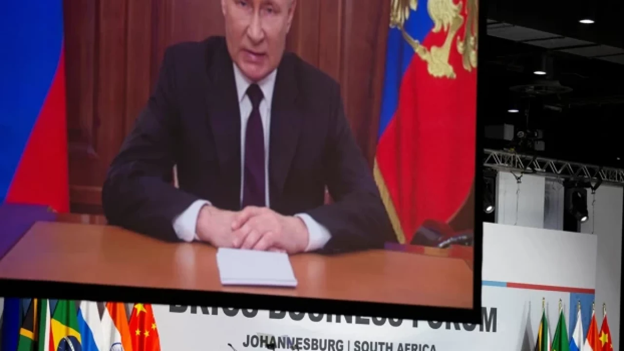 Putin, Uluslararası Ceza Mahkemesi’nin hakkında verdiği tutuklama kararı sebebiyle Güney Afrika’nın Johannesburg kentinde düzenlenen 15’inci Brezilya, Rusya, Hindistan, Çin ve Güney Afrika (BRICS) Zirvesi’ne uzaktan katılsa da, salı günü yayınlanması için bir video konuşma gönderdi.