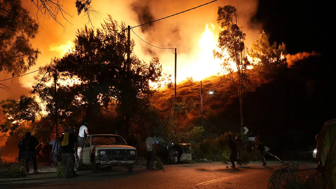 Türkiye kıyılarına 8 kilometre uzaklıktaki Yunan adası Sakız'da (Chios) orman yangını nedeniyle çok sayıda köy tahliye edildi.