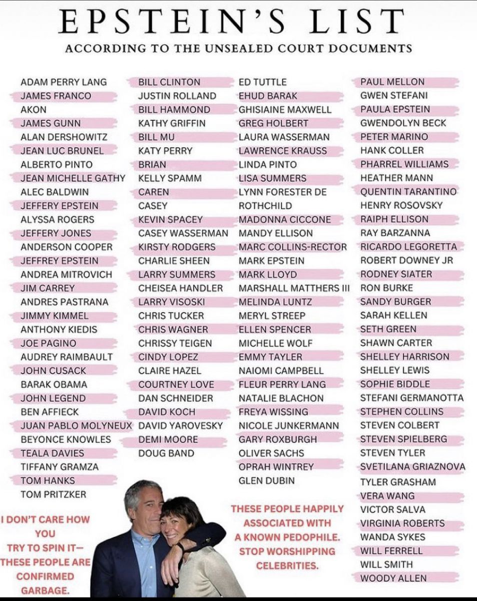 Aralarında Prens Andrew, eski ABD Başkanları Bill Clinton ve Donald Trump, eski İsrail Başbakanı Ehud Barak, eski ABD Başkan Yardımcısı Al Gore, aktör Kevin Spacey, şarkıcı Michael Jackson, illüzyonist David Copperfield, avukat Alan Dershowitz ve eski New Mexico Valisi Bill Richardson'ın da isimlerinin bulunduğu dava dosyaları çarşamba gününden itibaren kamuoyunu erişimine açılmaya başladı.
