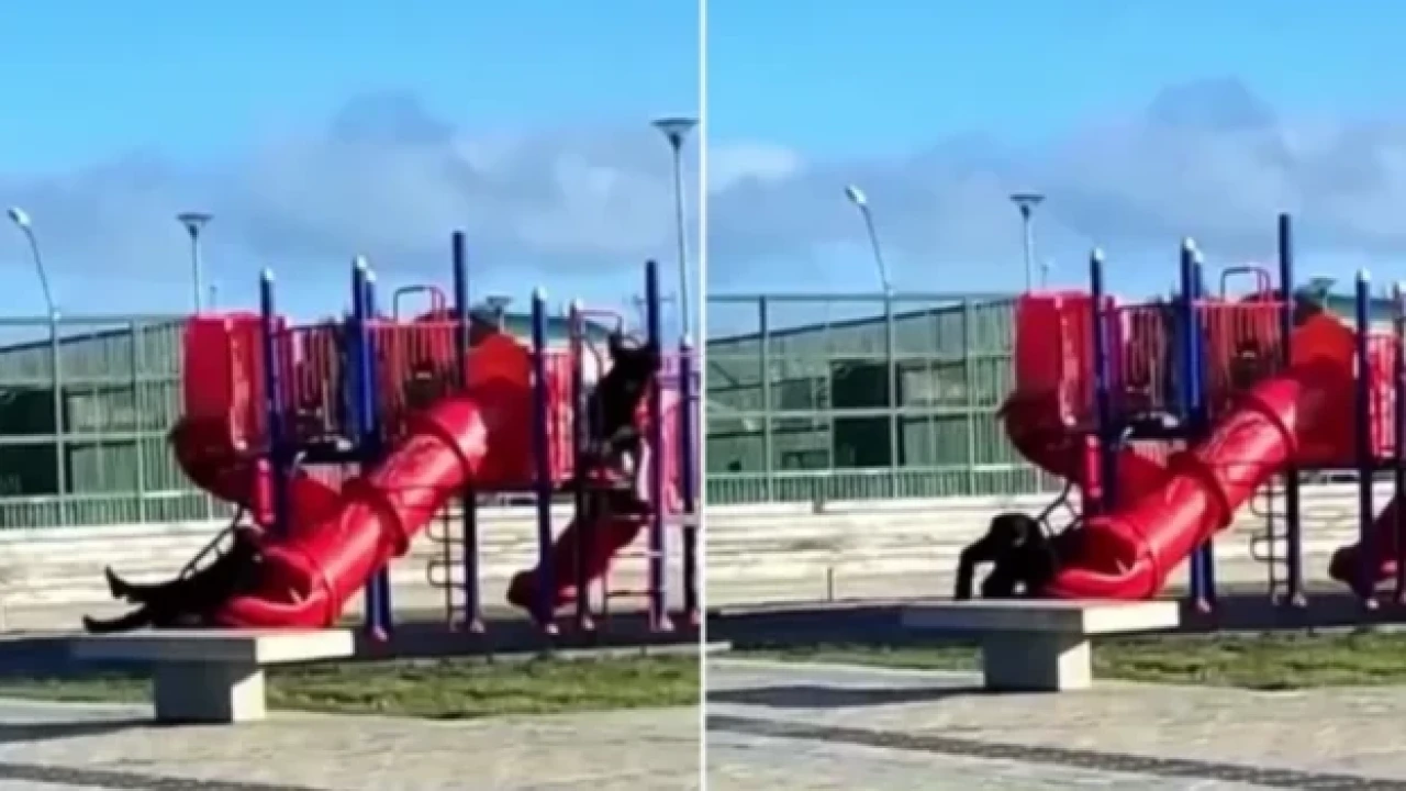 Oy vermek için Magallenes bölgesine gelen Boric, eşi Irina Karamanos ile yürüyeşe çıktı. Yürüyüş sırasında çocuk parkını gören Boric, eğlenmek için girdiği kaydırağa sıkıştı.