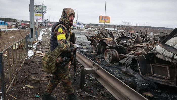Gerçek şu ki, beklenmedik bir şekilde hiddetli ve iyi organize olmuş Ukrayna direnişi onları başkentin dışında durdurdu. Rus konvoyunun yanmış ve parçalanmış enkazı söz konusu banliyö caddesinde duruyor.