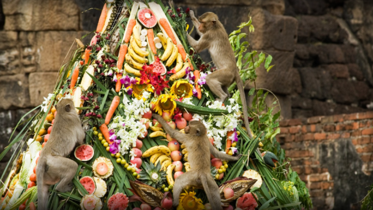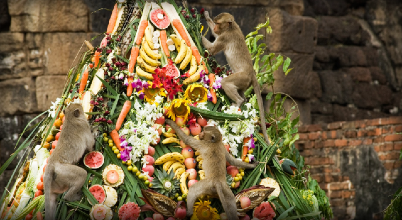 Her yıl kasım ayının son hafta sonunda Phra Prang Sam Yot Tapınağı'nda düzenlenen festivalde maymunlar için meyve ve sebzelerle donatılmış açık büfeler kuruldu.