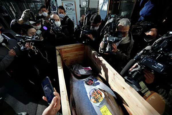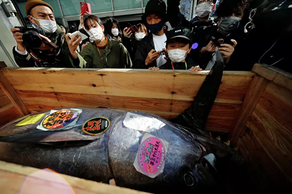 Kamu yayıncısı NHK'nin haberine göre, dünyanın en büyük taze balık, sebze ve meyve halleri arasında gösterilen Tokyo'daki Toyosu Pazarı'nda yeni yıl mezatı düzenlendi.
