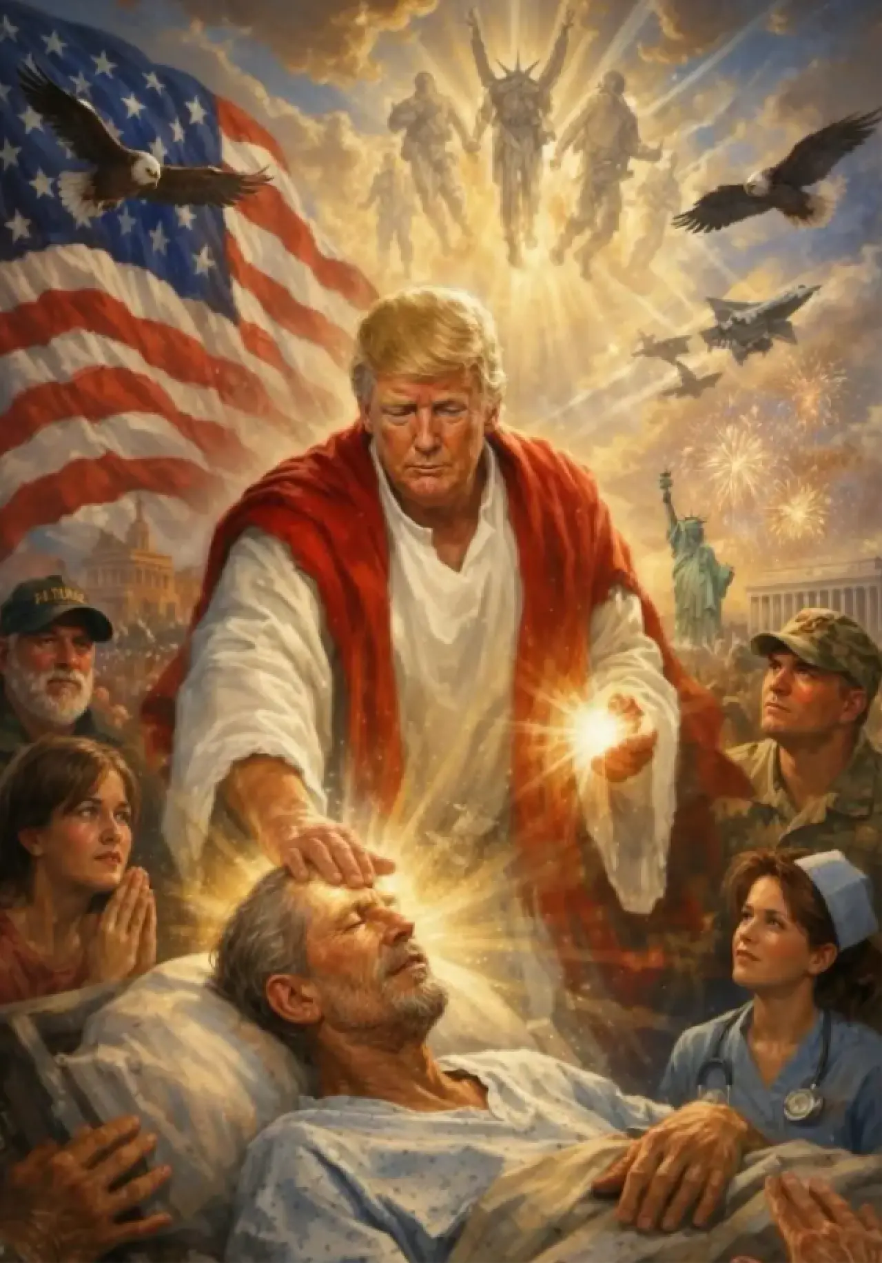 Trump’ın açıklamalarının ardından sosyal medyada paylaştığı bir görsel de tartışma yarattı. Yapay zekâ ile oluşturulan görselde Trump’ın kendisini Hz. İsa’ya benzer şekilde tasvir ettiği görüldü.