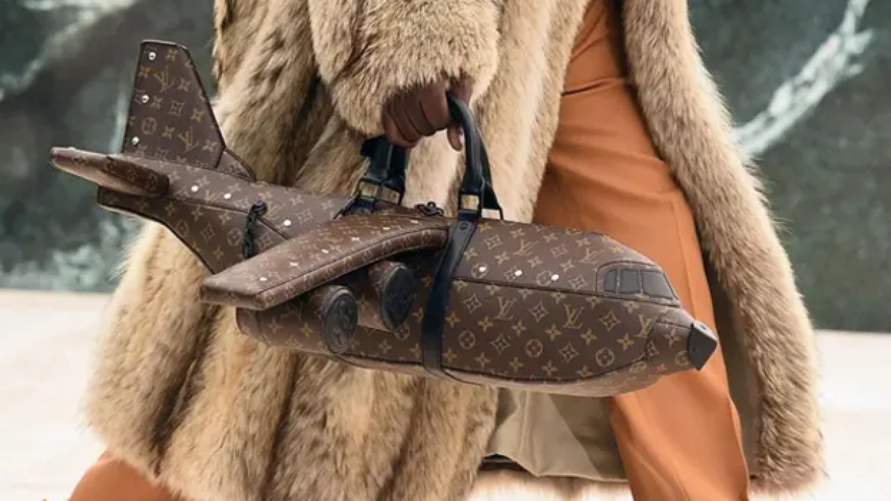 Kahverengi çanta, Fransız moda evi Louis Vuitton'un imzası olan monogram desenle kaplı, burna, kanatlara ve motorlara sahip uçak şeklindeki çanta, tasarımın kullanışlı olmaması ve fiyat etiketi sosyal medyada tartışma yarattı.