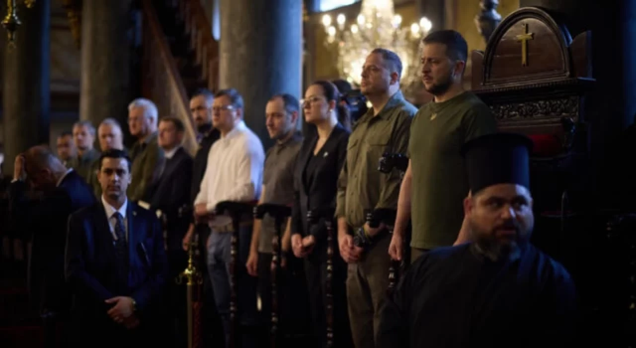 Dün Cumhurbaşkanı Recep Tayyip Erdoğan ile bir araya gelen Ukrayna Devlet Başkanı Volodimir Zelenski, Türkiye programı çerçevesinde Fener Rum Patrikhanesi’nde patrik Bartholomeos’u ziyaret etti. Bartholomeos, Zelenski’yi kapıda karşıladı, daha sonra patrikhanenin içinde bulunan kiliseye geçildi. Burada savaşta ölenler için dua edildi, ardından Bartholomeos ve Zelenski baş başa görüştü. Görüşmenin ardından Bartholomeos ve Zelenski basın mensuplarına açıklama yaptı.