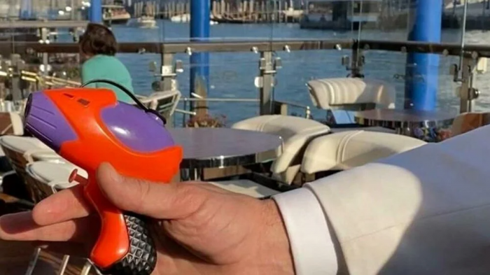 Öte yandan, Venedik’te bazı otellerin hali hazirde şahinleri denediği, ancak onları her gün kiralamanın pahalı olduğu ortaya çıktı. Ardından Gritti Palace ve Hotel Monaco & Grand Canal adlı iki otel misafirlerine tamamı turuncu su tabancaları vermeye başladı. Turuncu rengin ise martıları korkuttuğu için seçildiğini belirtildi.