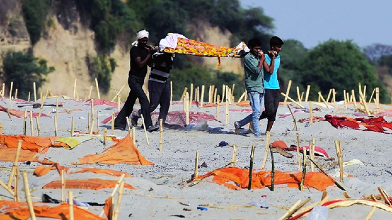 Hindistan'da ölüler, krematoryumların rekor sayılara yetişememesi nedeniyle açık alanda yakılıyor. Ülkenin kuzeyindeki köylülerin ise üçe katlanarak 15 bin rupi (yaklaşık 1730 TL) gibi fahiş fiyatlara ulaşan cenaze masraflarını karşılayamadıkları ve odun almaya bile paraları yetmediği için ölülerini Ganj Nehri'ne bıraktığı belirtiliyor.
