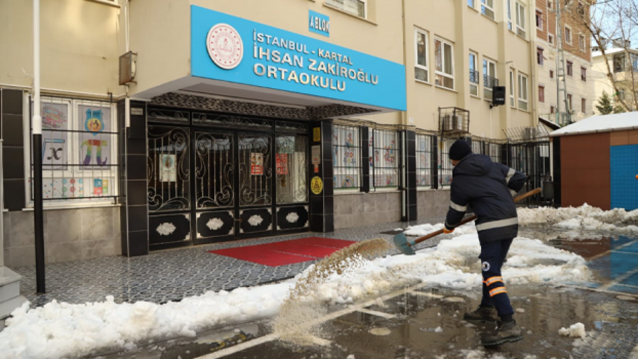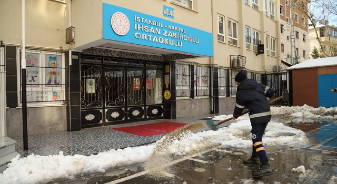 Kartal Belediyesi Fen İşleri Müdürlüğü, Temizlik İşleri Müdürlüğü ve Sivil Savunma Uzmanlığı ekiplerinin ortaklaşa yürüttüğü çalışmalar kapsamında kar küreme çalışmalarının yanı sıra tuzlama çalışmaları da yapıldı. Okul bahçeleri önce kar küreme araçlarıyla temizlenirken ardından zemin tuzlanarak buzlanmaya karşı tedbir alındı. Kar temizleme çalışmasıyla beraber dört günlük aranın ardından okullarına tekrar başlayacak olan öğrencilerin güvenlikleri önemli ölçüde sağlandı.