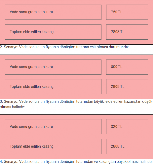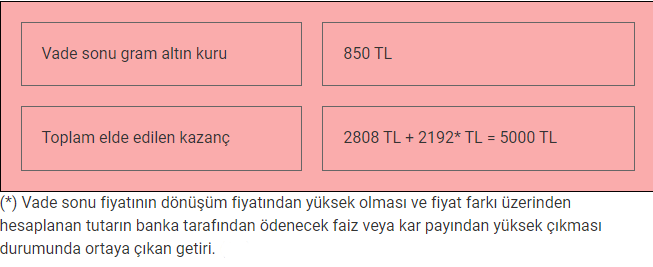 1. Senaryo: Vade sonu altın fiyatının dönüşüm tutarından küçük olması durumunda: